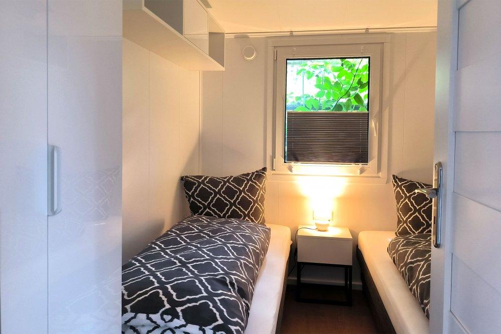In unserem neuen, modernen Tiny House sind auf kleinem Raum alle Annehmlichkeiten einer komfortablen Unterkunft vereint. Das Tiny House, ausgestattet mit Fußbodenheizung und Klimaanlage, bietet Platz für bis zu 4 Personen. Es verfügt über: